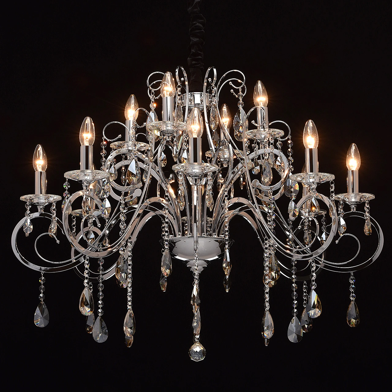 Подвесная хрустальная люстра Сюзанна Chiaro 458011012 от Chiaro, подходит для гостиной, в стиле современный, хрусталь. Материал — металл, цвет хром. Модель имеет 12 ламп, цоколь E14. Габариты: высота 1300 мм, ширина 880 мм, диаметр 880 мм.