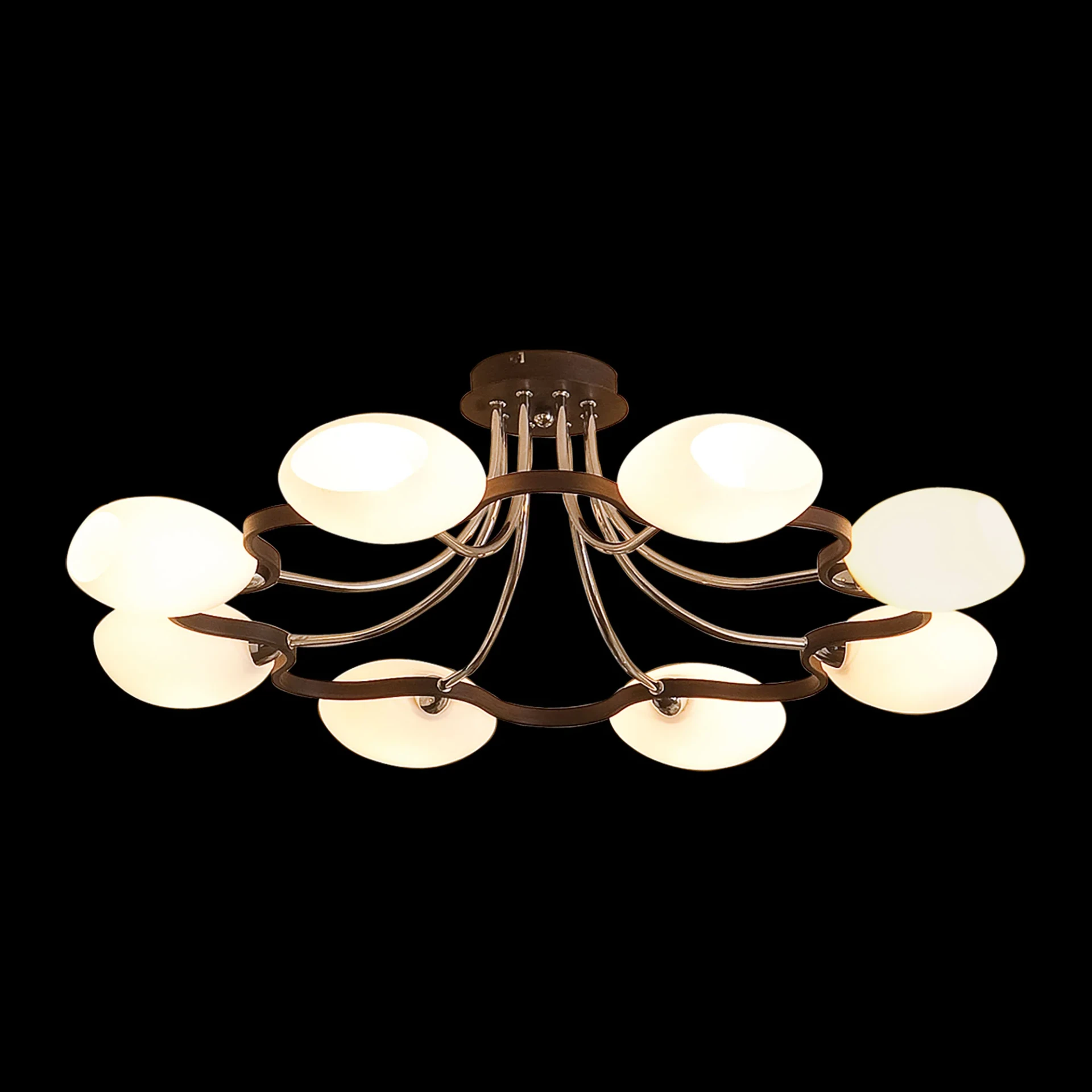 Потолочная люстра Citilux Октава CL131181 от Citilux, подходит для спальни, в стиле современный. Материал — металл, цвет венге, плафон из стекла, цвет плафона белый, форма плафона — сплюснутые. Модель имеет 8 ламп, цоколь E14, мощность 60 Вт. Поддержка диммера. Габариты: высота 260 мм, ширина 810 мм, диаметр 810 мм.