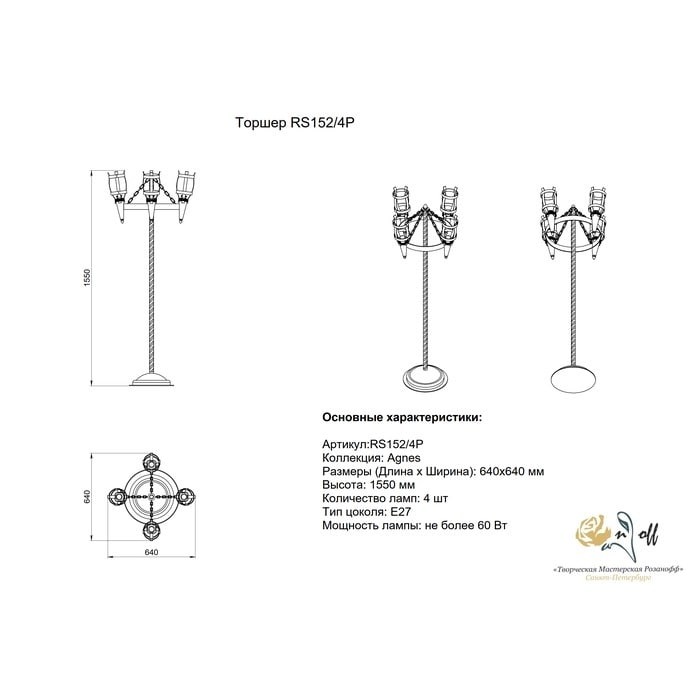 Торшер Розанофф Агния RS152/4P